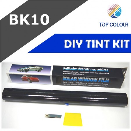 Nossa película adesiva com tonalidade escura em preto é a melhor escolha para controle solar econômico. O modelo é BK10 na cor preta escura. A transmissão de luz visível é de 10%. A película reduz o brilho e reflexo do sol sem influenciar na transmissão de rádio.